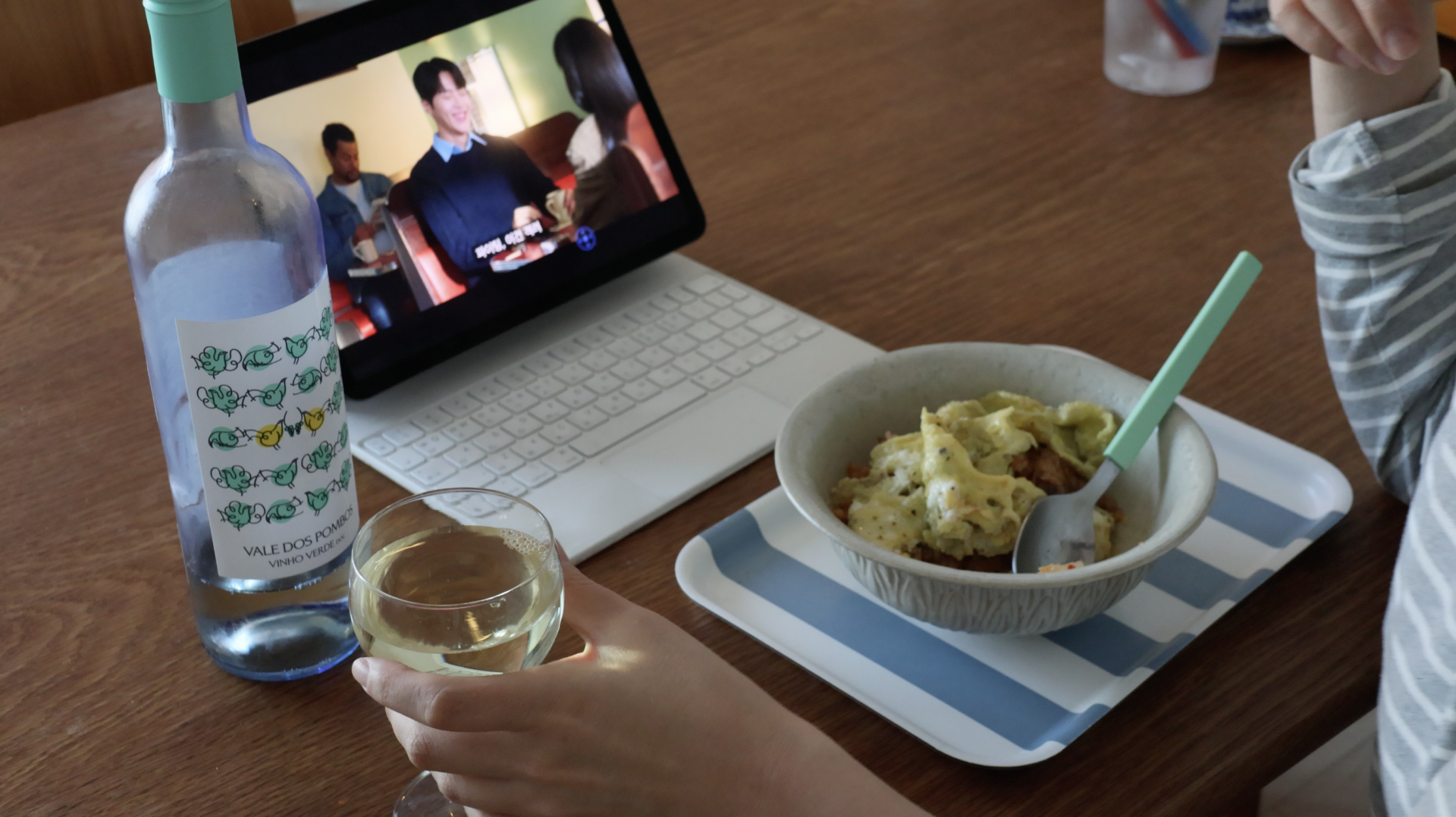 그리고 저는 바다 건너 위키드에 도착한 이 와인을 만두에만 드시라고 하기엔 너무 아깝다는 걸 깨달았죠. 약 2주 내내, 아무도 봐주지 않는 유튜브에 혼자 솥밥챌린지를 했어요 :) 사실 솥밥은 하루도 빼놓지 않고 해먹는 제 소울푸드이자 주식인데(2013년부터 저는 솥밥을 지었어요), 이걸 이달 화이트에 먹으니 만두뿐만 아니라 나물, 잡채, 콩장, 메추리알조림, 김치, 계란후라이, 쌀밥까지 커버해주는거예요. 아래 보시면 ㅎㅎ 제가 이사통 보면서 집밥화이트랑 김치볶음솥밥을 먹는 한장의 스틸사진이 나오는데요, 정말 이렇게 먹을 때 아무런 고민없게 만들어주는 화이트와인이예요. 저는 이 와인이 품절되면 너무 슬플 것 같아요. 12월 화이트, 1월화이트가 모두 품절되어 무려 3주나 화이트에 굶주린 분들, 이달 집밥화이트는 꼭 쟁여두세요.